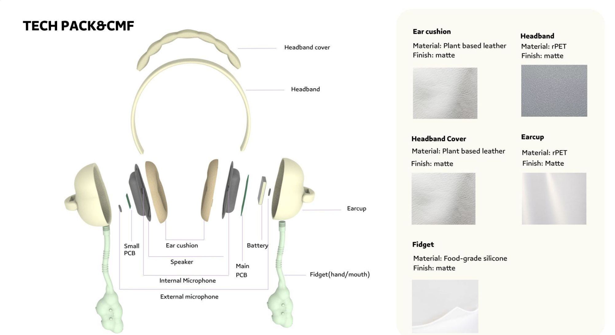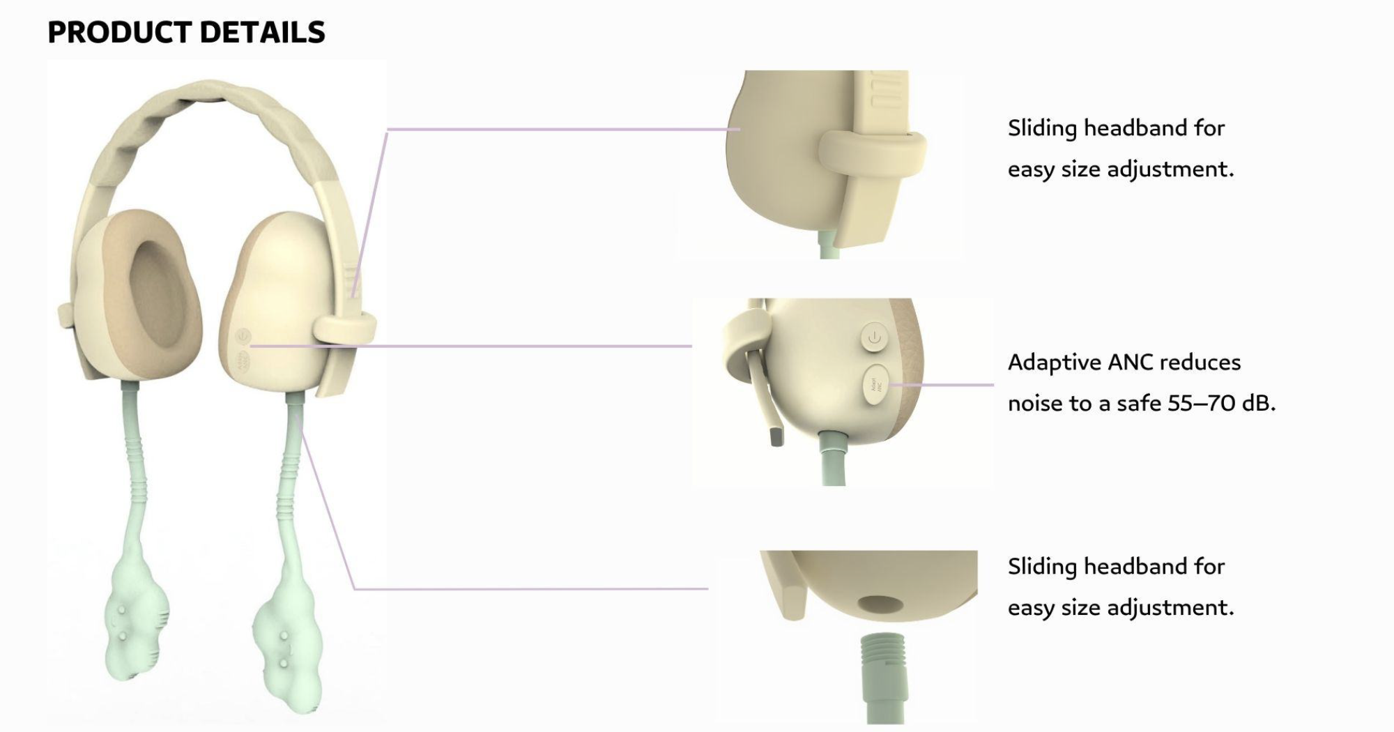 A noise-canceling headphone designed for children(2-4 years old) who are hypersensitive to sound, helping them better engage in social activities. It features adaptive ANC and integrated fidget tools beneath the headphones, providing effective noise reduction and a calming, comforting experience.