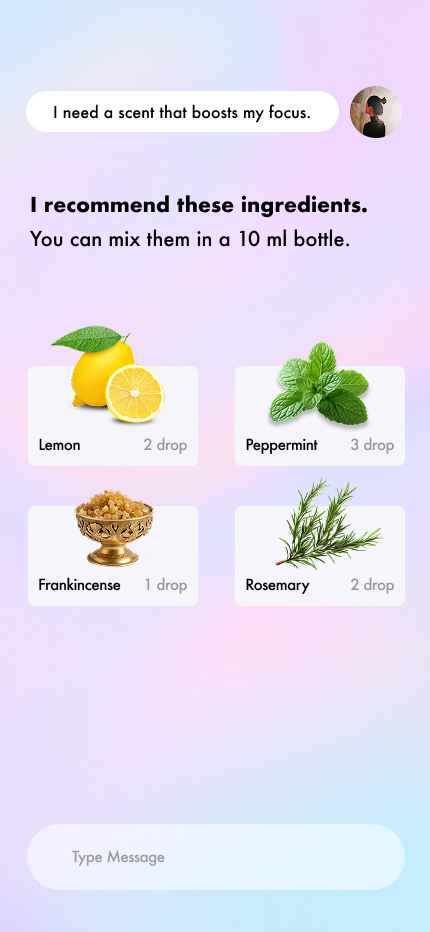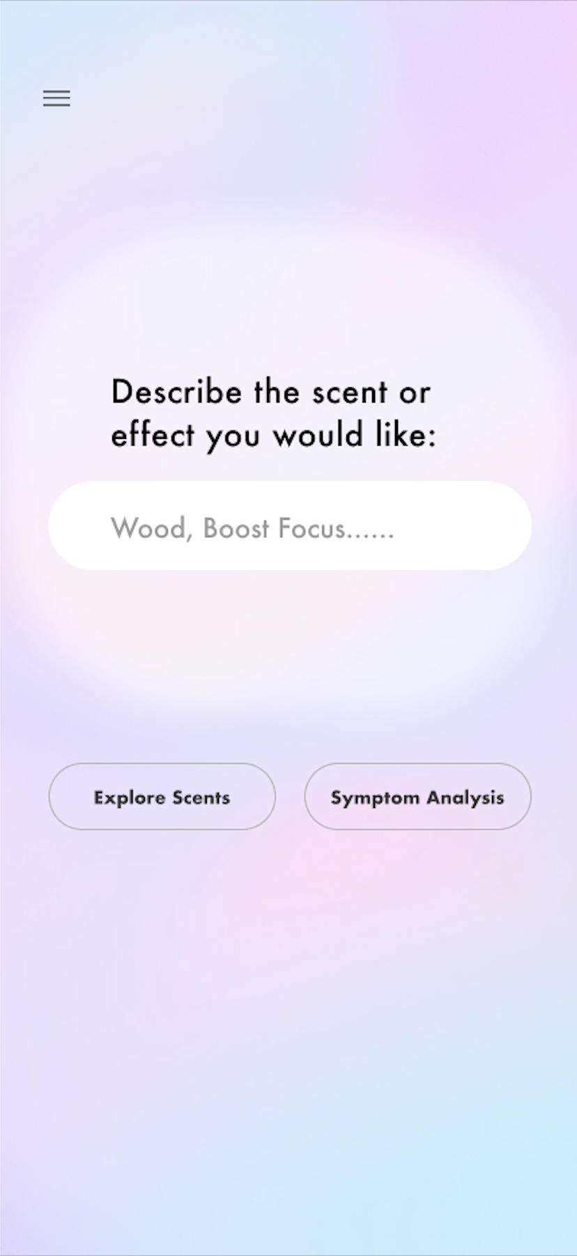 An AI-driven app that translates user scent preferences into personalized fragrance recommendations.Class: Design Fundamentals 2Date: 2025