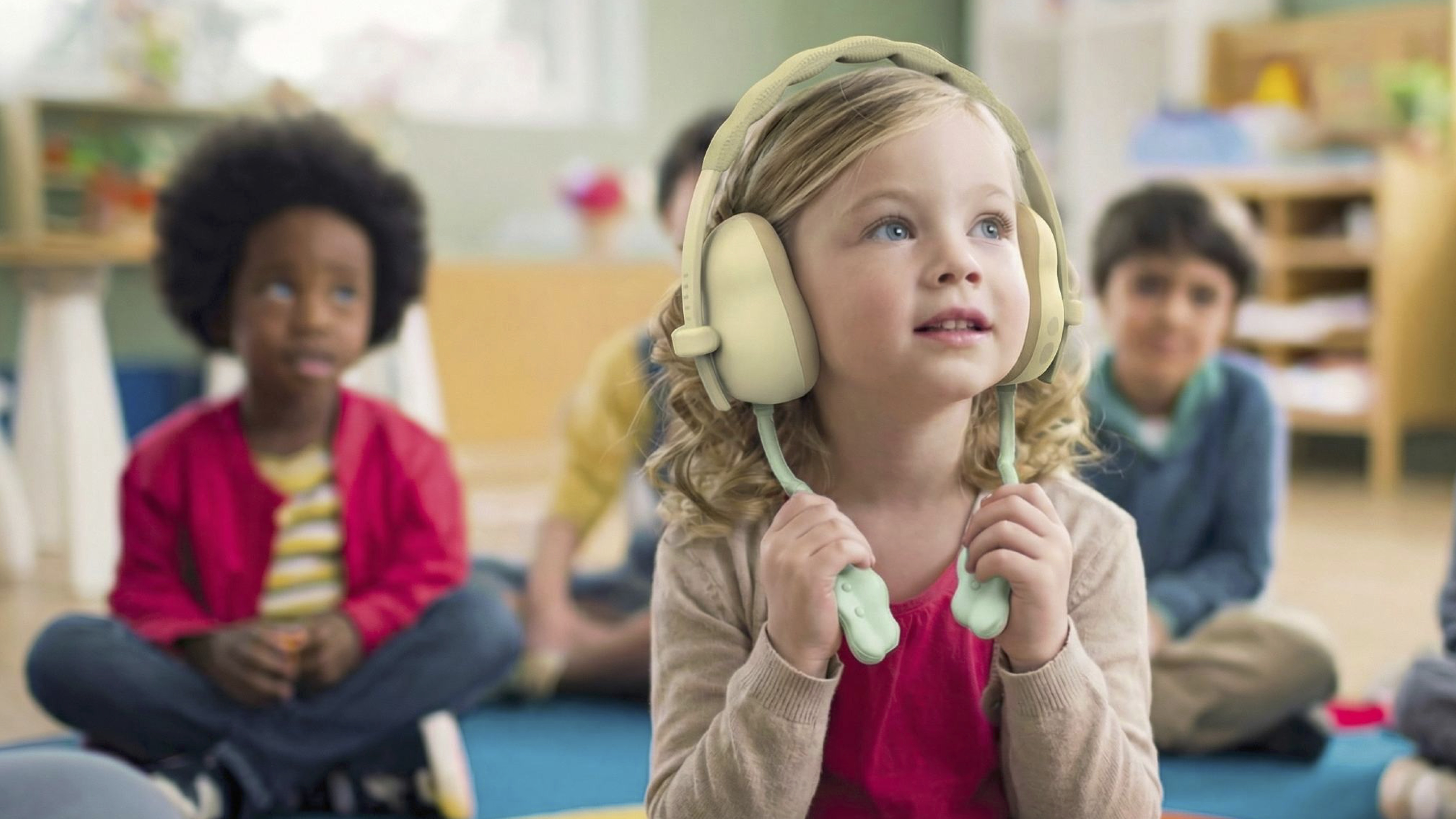 A noise-canceling headphone designed for children(2-4 years old) who are hypersensitive to sound, helping them better engage in social activities. It features adaptive ANC and integrated fidget tools beneath the headphones, providing effective noise reduction and a calming, comforting experience.